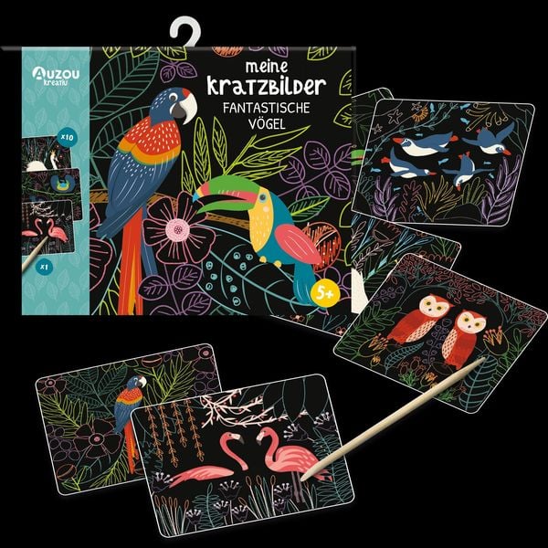 Papageien, Kolibris, Tukane … Entdecke all diese Vögel und mehr auf den Kratzbildern!