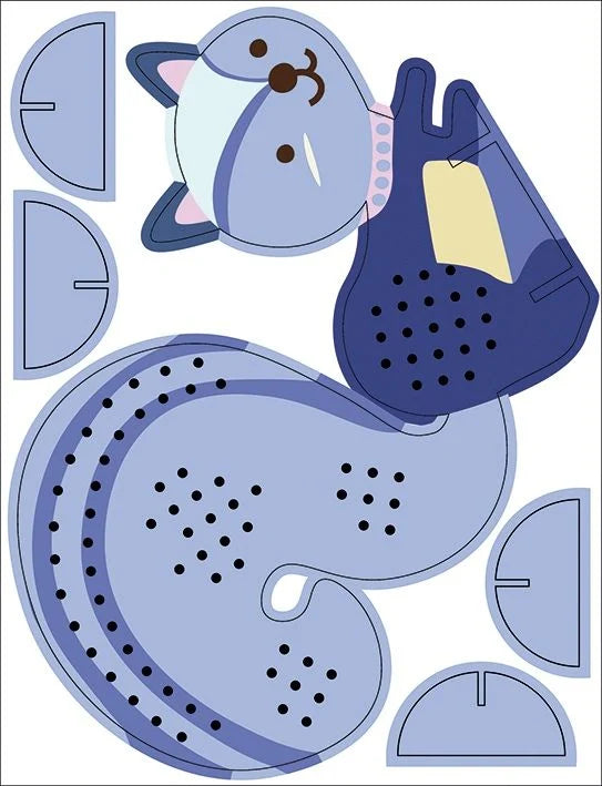 1 Tiermotiv Aufsteller (ca. 21 x 18 cm) zum Sticken, Garn in 5 verschiedenen Farben (je 8 m lang) und 1 Plastiknadel