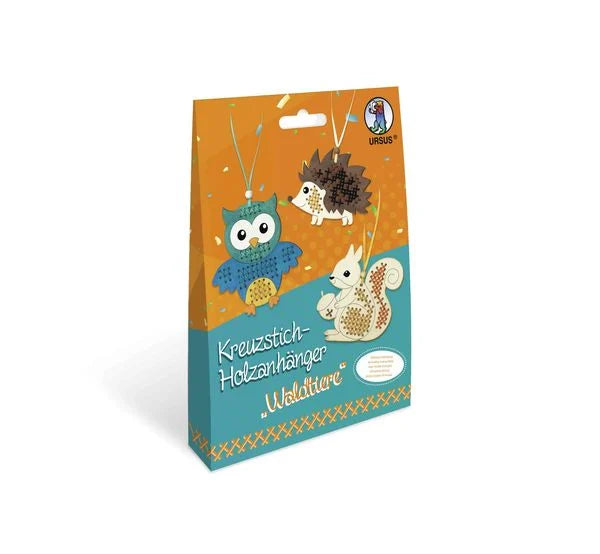 URSUS Kreuzstich Holzanhänger Waldtiere